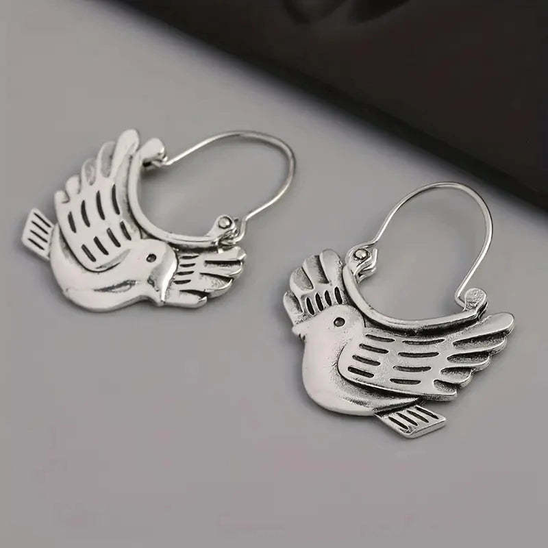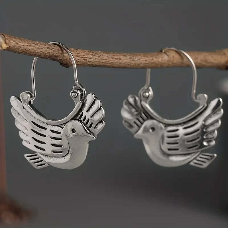 Boho Bird-Inspired Dangle Earrings – Silver-Tone