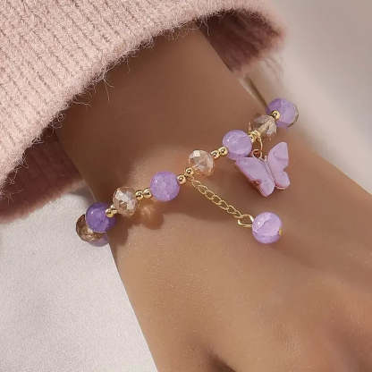 This bracelet speaks to the beauty of change and renewal—a reminder that life's most precious moments often come from embracing our own metamorphosis. The purple butterfly charm serves as a gentle guardian, symbolizing the soul's journey toward freedom and joy.