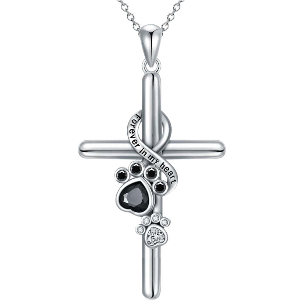 925 Sterling Silver Paw & Cross Necklace
