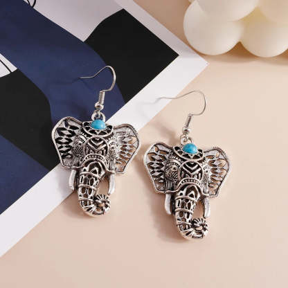 Vintage Elephant Drop Earrings Silver Bohemian