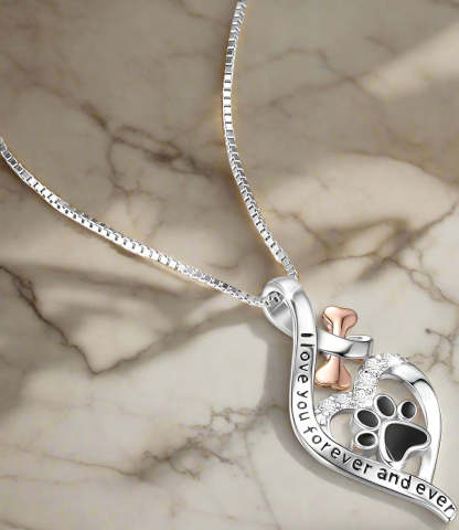 Szerencsés Mancs Nyaklánc Szívvel, Csonttal és Végtelennel – “Mindig a Szívemben” Medál