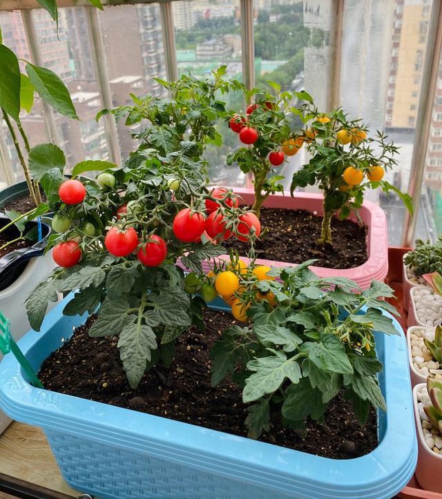 Sokféle gyümölcs:A cserépben nevelt paradicsomok különböző színekben és fajtákban kaphatók, beleértve a pirosat és a sárgát. A gyümölcsök ízletesek és alkalmasak nyersen fogyasztásra vagy főzéshez.