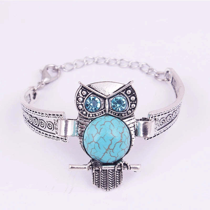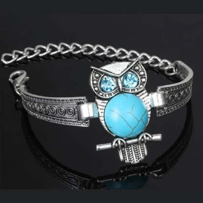 Vintage bagoly türkiz medálos karkötő